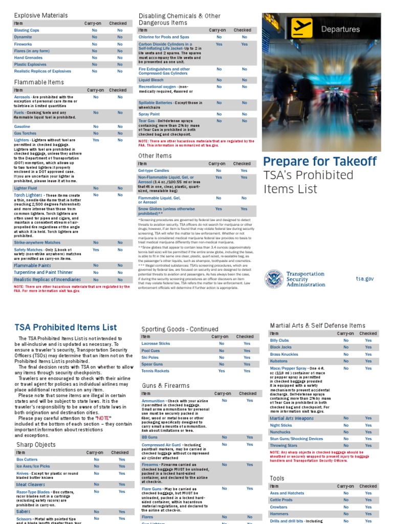 Tsa Prohibited Items Brochure